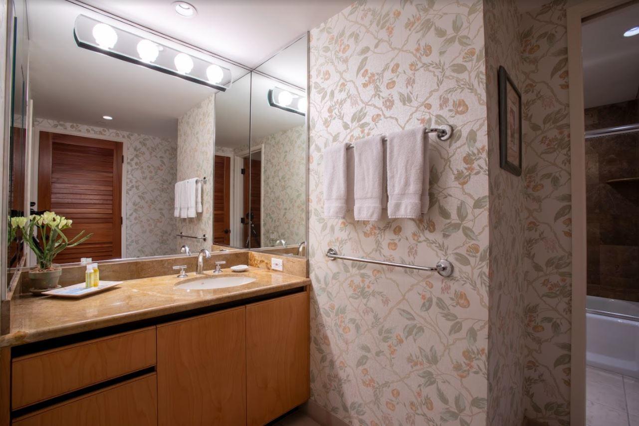 Recently remodeled bathrooms and bedrooms blend modern comfort with refined Hawaiian style. Thoughtful touches throughout the residence include island-inspired décor such as a framed quilt, colorful wood carvings of reef fish, and a hand-carved koa wood canoe paddle, creating a warm and authentic sense of place.