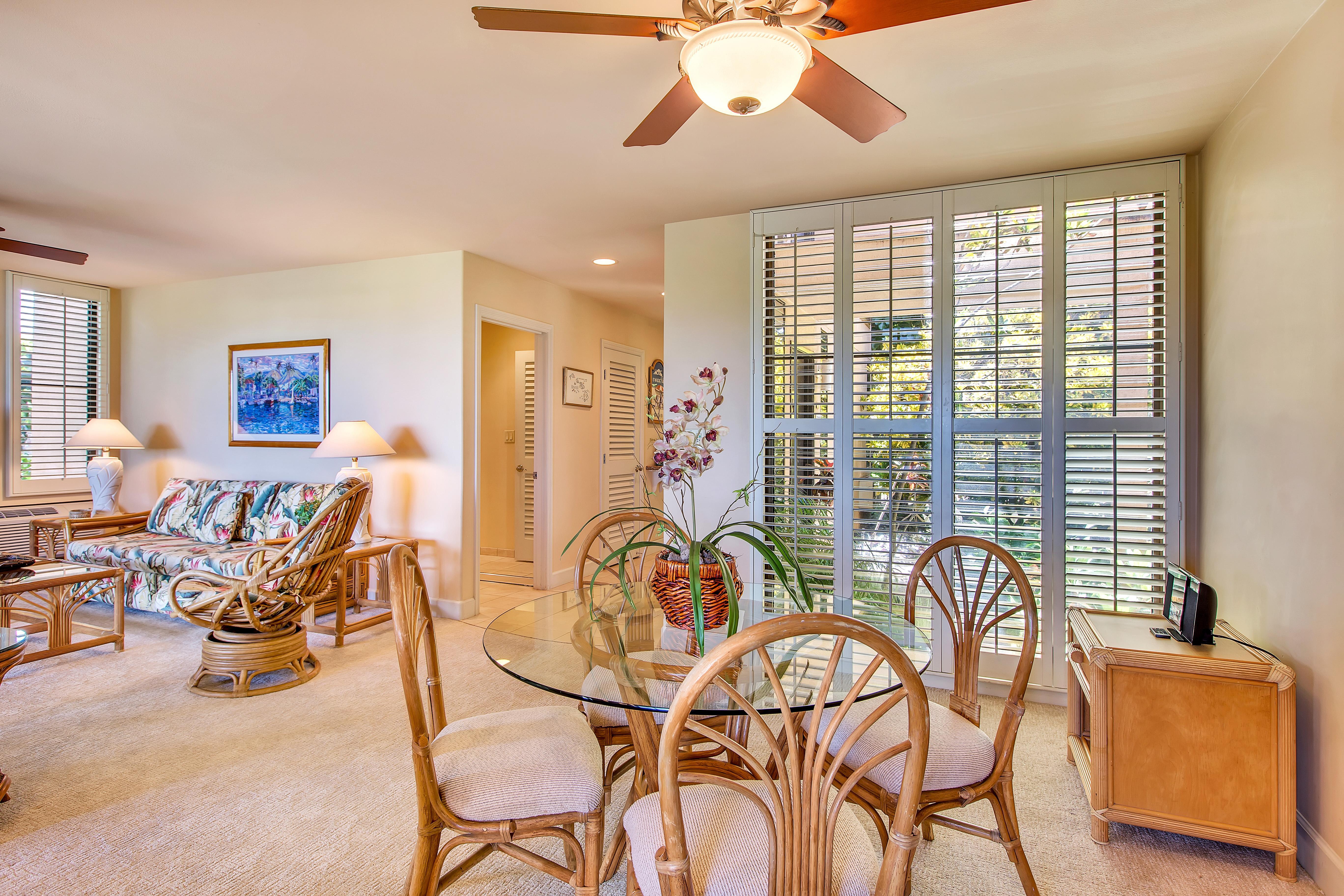 Welcome to the serene Wailea Ekahi Village 54B, a luxurious 1-bedroom, 2-bathroom garden view condo nestled in the heart of Wailea. This meticulously designed retreat comfortably accommodates up to four guests, offering a perfect blend of elegance and comfort for your Hawaiian getaway.